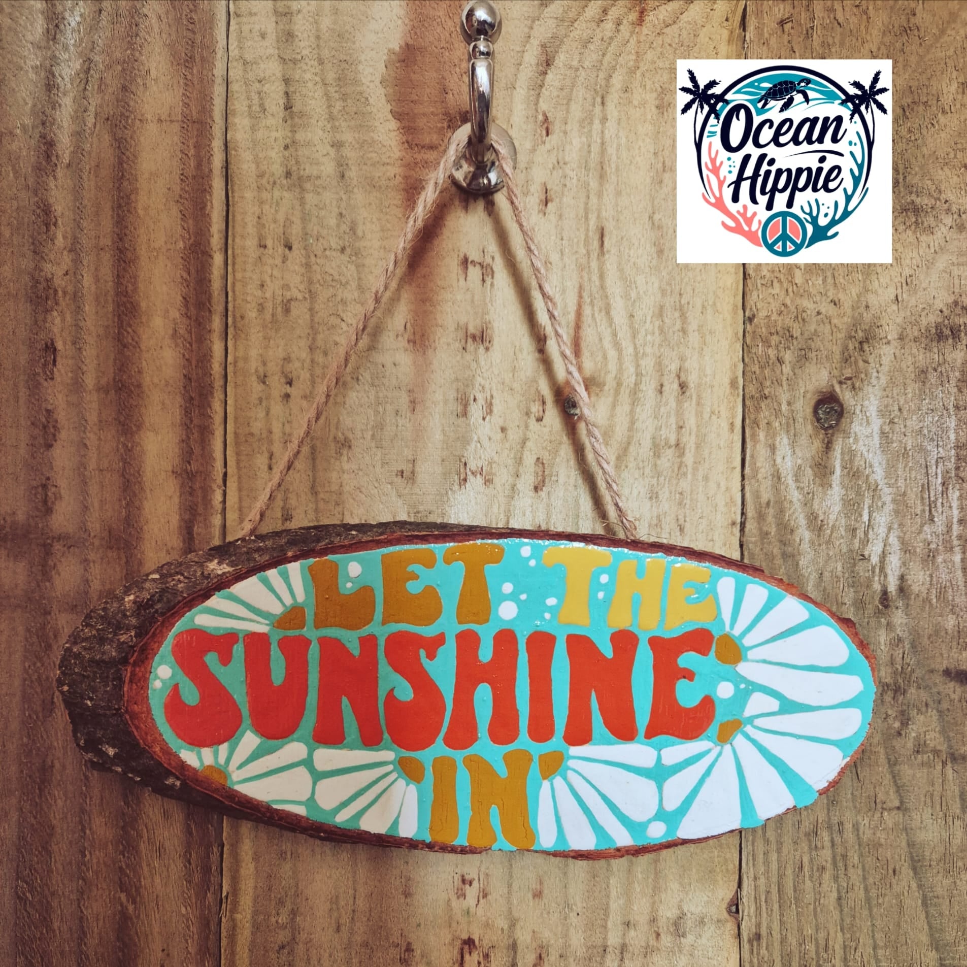 Rustic Log Slice Hanging sign - Let The Sunshine In